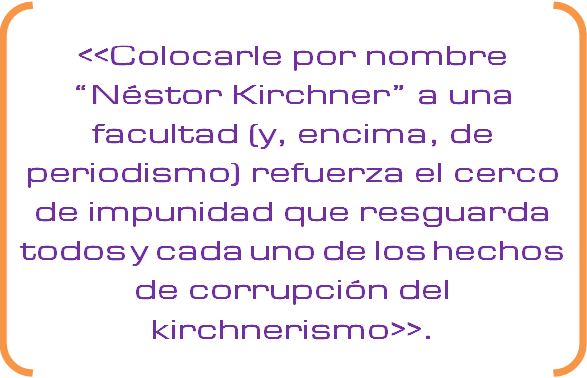 Pero no es el caso de un periodista, ni mucho menos de un establecimiento educativo destinado, precisamente, a formar periodistas. ¿Por qué? Por la sencilla razón de que el periodismo está destinado a ser una usina de permanente crítica al respecto del desempeño de los funcionarios, mucho antes que de reivindicación de los mismos, siendo que por más de que el ex presidente Kirchner haya fallecido, tanto su manera de gobernar como de hacer política siguen dándonos de qué hablar a todos los argentinos.